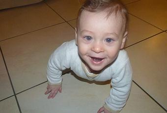 Il évolue librement dans la maison en rampant. Le 4 pattes ne semble pas trop lui plaire même s'il s'en sert quand même pour passer de la position assise à plat ventre, et inversement. Depuis 10 jours il cherche à se mettre debout ( et y arrive ) partout où il peut : dans la baignoire, dans son parc, devant le canapé etc...