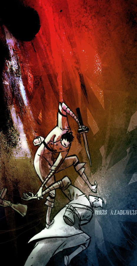 nouvelle tentative d'illustration, histoire de renforcer u peu mon dossier bd, ça m'entraine à dessiner du systemA et ça finalise ce perso somme toute principal dan l'histoire. Vu qu'elle est en court d'écriture, et qu'il faut savoir se proteger du plagiat, je ne peux pas trop en réveler. sauf un petit synopsis un de ces 4. ça parle en gros d'une jeune femme, d'un nihiliste powerful, d'un cosaque nazillon, d'un vieux général, de créatures mythologiques russes folkloriques, de révolution russe, du passé et du présent, du néant aussi..