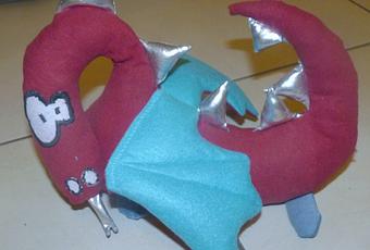 Le problème quand on part d'un patron de sa propre création, c'est qu'il y a toujours quelques surprises au final. Le produit fini ne ressemble malheureusement pas assez au dessin du départ je trouve. Je vais donc dire qu'il s'agit là d'un prototype, que si je devais refaire ce dragon, je lui élargirais le cou et la tête, je lui gommerais aussi un peu de sa poitrine ^^.