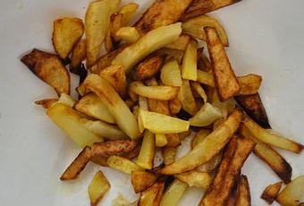 on a beau être voisins de la belgique, y être allés souvent, et même avoir mangé les frites de chez antoine, les meilleures frites du monde sont quand même françaises, ardéchoises, même, et ce sont les frites de ma soeur voilà à quoi elles ressemblent. des vraies patates fraîches, coupées au couteau et frites dans l'huile en une fois. la salade c'est juste pour se donner bonne conscience elles sont belles, hein ?