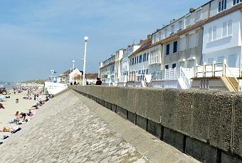 Le développement touristique a été facilité par le chemin de fer - ici, le tramway de 1903 à 1931 - comme pour l’essentiel des nouvelles agglomérations nées avec la vogue des bains de mer. Ici, le succès date plutôt des années cinquante. L’urbanisation s’est concentrée sur l’avenue de la plage. Il y a évidemment un casino … des boutiques d’articles de plage. On aboutit à un rond –point devant la mer et puis à gauche, on longe une promenade bordée d’immeubles de deux étages. En ce week-end d’été précoce, tout est encore fermé mais les panneaux « à louer » sont présents. Il y a le choix : un sous-sol à l’anglaise à demi enterré, un premier niveau en terrasse, un premier étage avec balcon … On est juste devant la mer ... Un sentiment d'immensité toute proche ...
