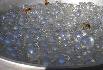 Ainsi les abeilles se poseront sur les billes ou les bouchons pour boire sans risque de noyade et de plus ils empêcheront l’évaporation de l’eau. Placez cet abreuvoir près d’un endroit où vous les voyez butiner, et surtout au soleil. Vous verrez très vite nos petites abeilles venir s’abreuver.