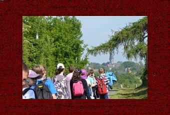 Elle se prépare tout au long de l'année la fête du Sacré-Coeur, puis...une suggestion: inviter les séminaristes eudistes étrangers en séjour sur les terres de Saint Jean Eudes. Le Père Florent Acotchou devient notre émissaire: prise de contact, avec ceux-ci et déplacement pour les rencontrer, confirmation à quelques jours de la fête et tout s'organise au pied levé...Mais c'est cela l'ouverture, notre nouveau Pape François n'a t'il pas dit que nous ne devions pas être des chrétiens de salon...Contact aussi avec école et collège du Sacré-Coeur, motivés au point d'inviter leur homologue de Domfront (Orne) un thème de pèlerinage avec un jeu de piste sur Jean-Paul II et le Pape François. Ils sont donc 200 élèves à prendre les chemins et petites routes au départ de Condé-sur-Noireau, pour se rendre au Sacré-Coeur de Saint Germain, accompagnés des séminaristes, des prêtres et de quelques fidèles (hélas encore peu nombreux). Pas le temps de prendre un rafraichissement à l'arrivée, déjà un quart d'heure de retard sur l'horaire de la messe...Et quelle messe ! musique et chants traditionnels, et chants d'ailleurs avec les séminaristes d'Afrique, d'Amérique du Sud et des Etats Unis, et la participation de 7 prêtres des villes et bourgade de Suisse Normande. Deux heures aura duré cette messe animée et fervente, qui s'achèvera pour la première fois sous le porche avec l'Angélus à Notre Dame du Sacré-Coeur.