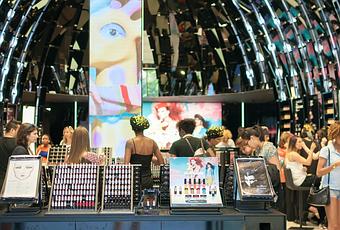 Moi et le maquillage, disons que ça fait 2. Je me maquille oui mais en 30 secondes chrono et je n'ai aucune connaissance en la matière. Mais s'il y a bien une marque qui me donne envie de savoir me maquiller pour de vrai c'est bien M.A.C. Alors quand on m'a invité à me faire maquillée par un make-up artist dans le plus beau magasin M.A.C de la terre sur les Champs Elysées à l'occasion de la nouvelle collection de la marque, Playland, autour de bons gâteaux et d'une petit coupette, j'ai dit ouiiiiiiiiiii. En plus j'y étais avec ma babymodeuse, l'adorable Sophie et Katia.