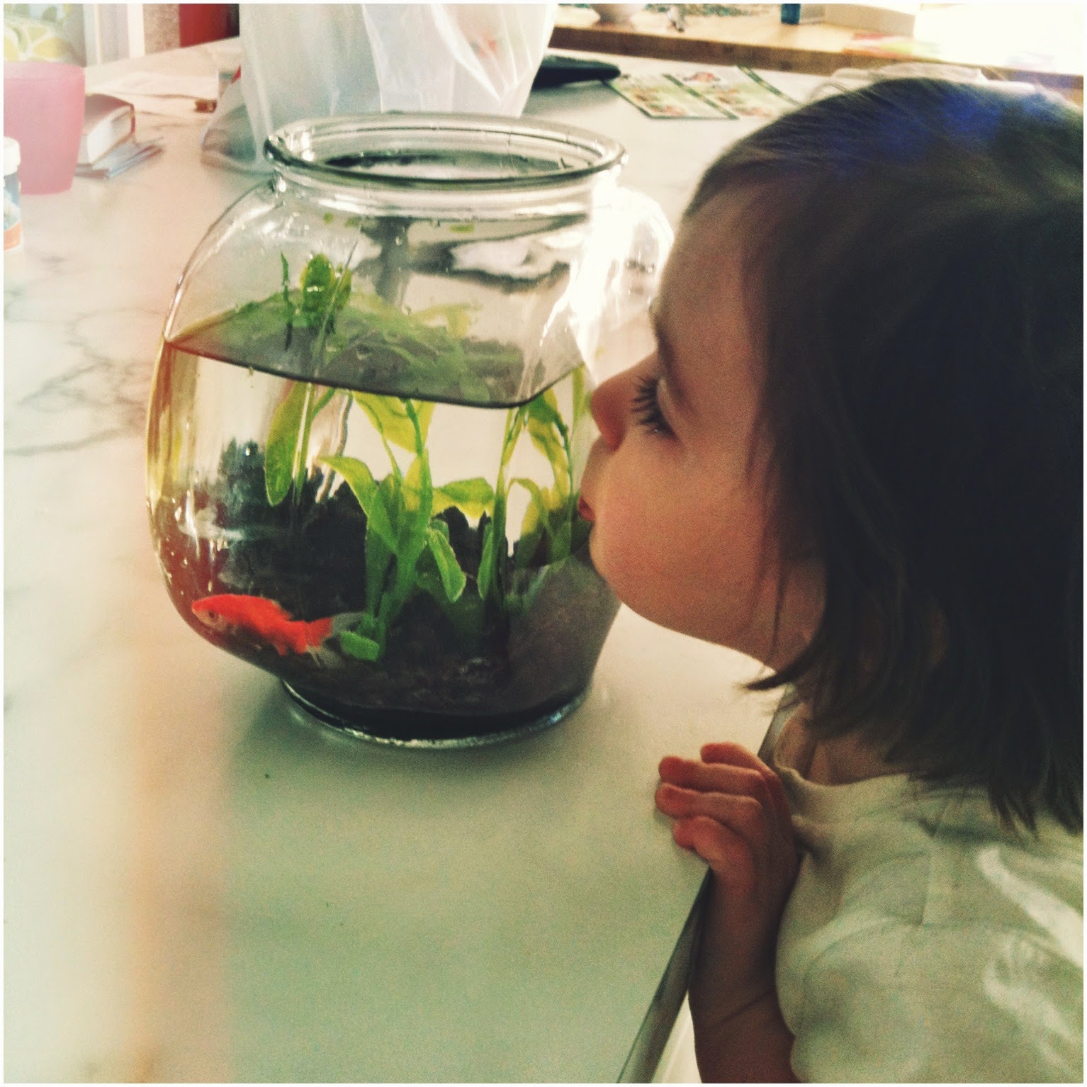 Sauf qu'à peine 48 heures après son adoption, Crowquette a commencé à tirer de la patte, ou plutôt à battre faiblement de la nageoire, si vous voyez ce que je veux dire.Rachel ne notait pas vraiment la différence, elle continuait de couvrir son bocal de baisers tendres pleins de beurre de peanut. Nous, on savait bien: c'en était déjà fini de Croquette.Morale de l'histoire: 2 ans, c'est l'âge parfait pour s'approprier un poisson rouge. La mémoire des enfants de cet âge n'est pas développée au point qu'ils soient marqués à vie par la mort de leur poisson rouge. Ah et, aussi... prenez un bocal un tantinet plus large que le mien. Je crois qu'elle était claustrophobe, la pauvre Croquette. On fera mieux la prochaine fois, c'est promis!Alexïs xoRédactrice en chefNaNa Toulouse