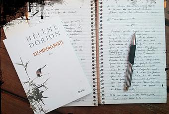 Parlant philosophie, hier, il y eut course aux beaux vêtements pour une fête prochaine. Cherche la bonne grandeur, les couleurs qui te vont bien, mais non, ce motif ne va pas avec celui-là, ni le rouge avec le turquoise ni le nylon avec ce coton et surtout le prix ne va pas avec mon budget. Pour me récompenser de ce magasinage qui s’allonge, de cette impatience qui pointe, je me suis fait réellement plaisir : j’ai acheté un livre. Recommencements d’Hélène Dorion. Évidemment, je l’ai commencé dans l’heure qui me ramenait à la maison. Évidemment, j’aime. Évidemment, des phrases ont commencé à virevolter comme des mouches au-dessus d’une tête fraîchement lavée. Évidemment, je bois ses phrases comme un vin millésimé, en comparant les miennes à du petit lait.