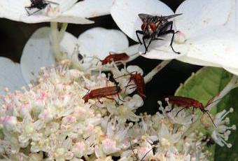 Une inflorescence d’Hydrangea paniculata, c’est grouillant d’insectes.