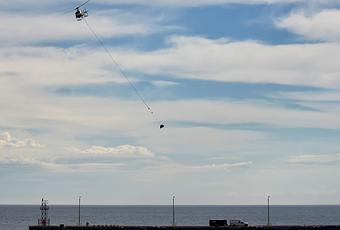 hélicoptère faisait la navette entre le quai et la berge, ce qui était assez