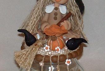 pot en verre avec p'tite sorcière et mémo (tableau noir)