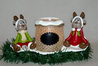 Un porte-bougie avec couple de renne de Noël pour égayer votre table.