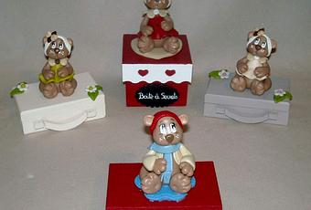 voici diverses Petites boites en bois pouvant contenir bijoux ou différent petit objet avec comme décor petite oursonne et ourson