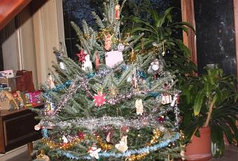 Pour la première fois depuis des années il y a un arbre de Noël dans mon séjour. Sauf les guirlandes électriques, il est entièrement décoré par Juliette, 6 ans, et Elise, 9 ans. Il y a même une chouette, un écureuil, et, plus inattendu dans un arbre, un hérisson à piquants blancs.