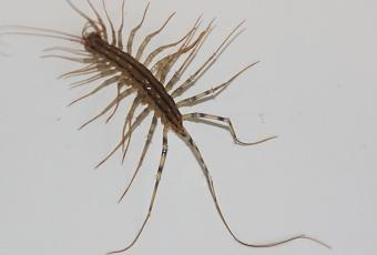 Scutigera coleoptrata est une étonnante bestiole. Ce n’est pas un insecte puisqu’il a 15 paires de pattes (d’un côté il en a perdu au moins 3, il les perd facilement). C’est un Myriapode, classe des Chilopodes avec une paire de pattes par anneau. Il est fréquent dans les maisons, surtout dans les lieux humides comme la salle de bains. Il est inoffensif et chasse des insectes plus gênants, il est à considérer comme une aide. A vrai dire, il pourrait piquer mais pour cela il faudrait être assez vicieux pour le serrer fortement dans la main et la piqure serait inoffensive. Il semblerait que dans des pays plus chauds, il y ait une variété qui pique plus facilement avec des conséquences plus graves. Il a couru sur ma main, il est si léger que je n’ai même pas ressenti des chatouilles.