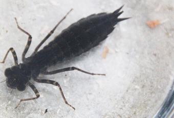 Ces larves se tiennent tout au fond de la mare quand il fait froid et, comme je drague en surface, je ne les ramène pas. Je prends toujours la précaution cependant de poser les feuilles tout au bord de l'eau dans un premier temps pour qu'elles aient des chances d'y retourner.