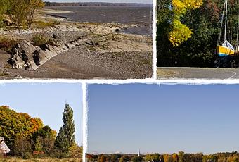 Sur le Chemin du Roy:ChamplainBatiscanGrondinesDeschambaultPortneufCap-SantéNeuvilleSaint-Augustin-Desmaures Du soleil, des couleurs automnales, un vent chaud, le fleuve qui se laisse aimer, une marée douce, qui d'un seul regard me foudroie directement au cœur et me ramène à une vie dont l'interprétation m'échappe. La nature est riche et m'enrichit.