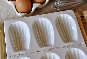Ma fille connait bien mon attachement pour la gourmandise et garde certainement le souvenir d'avoir dégusté dans son enfance des madeleines plutôt lourdes,elle m'a offert ce petit moule trouvé chez Gilles Marchal Une invitation à faire des essais sachant que j'avais maintenant de bonnes recettes.