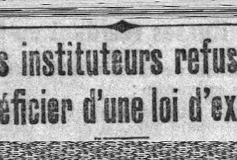 Le 24 février 1915, en dernière page, Le Petit Parisien retranscrit la demande solennelle des enseignants, qui veulent être traités comme les autres hommes de France, à savoir bons pour la guerre, prêts au combat, devant comme les autres en découdre face à l’ennemi.