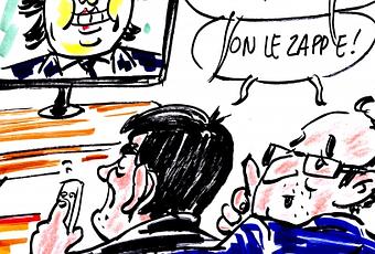 La Semaine de Suzette Zombi. Lundi : Les écolos sont un peu coincés face aux politiciens libéraux quand ces derniers leur expliquent que la politique, c'est la loi de la jungle.
