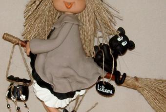 sorcière à suspendre avec son chat réf:9327 75 € vendue