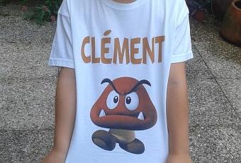 Mon fils adore Mario bros et plus particulièrement les goombas, les petits méchants. Je trouve qu'ils lui resemblent étrangement lorsque clém est faché ! Avec la casquette et le tee shirt ça fait vriament rigolo !