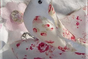 * Pour le dos et les ailes, façon shabby, appliquez directement une pièce de tissu (découpée bords à cru. Pour éviter l'effilochement, vous pouvez la doubler de viesline avant, toile thermocollante fine). Bourrez de molleton l'aile avant les derniers points de couture.