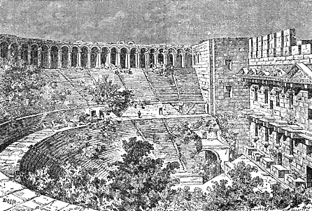 Singulièrement, sa lecture se trouve facilitée par un rayon de soleil qui vient caresser la pierre. Elle consulte son bracelet-montre : il n’est pourtant que 23h30 ! Voilà qui devient parfaitement extravagant !Mais non. C’est l’évidence même.Elle vient de faire un saut dans le temps.Elle n’arpente pas la sinistre Orange moderne, mais l’Aurasio romaine, celle où l’on donne des pantomimes et des tragédies, où les esclaves vont chaque matin chercher l’eau à la fontaine, où les matrones commencent dès l’aube à travailler à leur écheveau !Anne-Laure n’en peut plus d’enthousiasme. Ce voyage prend enfin tournure !En écho à son pressentiment, un char antique se présente à sa rencontre. La mule alerte qui le tire est guidée par un jeune homme, un esclave très probablement, qui apporte de la campagne des produits agricoles à vendre. Anne-Laure se précipite en travers du chemin :« Esclave, esclave ! » [Les propos d’Anne-Laure sont prononcés originellement en latin, mais pour l’intelligence du texte nous avons préféré les traduire en français. Pour goûter toute la saveur de la VO, pensez Google Traduction !]« Pardon ? »« Nous sommes bien à Arausio ? »« Hein ?! »« À Arausio. Nous sommes bien à Arausio ? »« Qu’est-ce qu’elle raconte ? »« Tu n’es pas très réactif. Tu parles peut-être mieux le grec ! Je suis désolée, je suis plus à l’aise en latin. Sais-tu à quelle heure les spectacles de théâtre commencent ? »Le jeune homme lève les épaules vers le ciel.« Dès que le jour commence ? Ah, merci ! Tu ne peux pas savoir ce que ça me fait plaisir d’être là. »