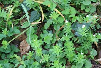 Le tapis d'aspérule odorante qui ne disparait pas totalement en hiver redevient dense et commence à fleurir :