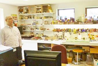 Nous avons ensuite pénétré dans l'atelier de fabrication et de conditionnement. L'on est surpris, compte tenu de la notoriété de la marque, par la dimension artisanale de l'entreprise. Blockx qui a choisi le "haut de gamme" privilégie la qualité plutôt que la quantité. Une couleur est produite chaque jour. Le cycle complet de fabrication des couleurs du nuancier est bouclé deux fois par an.