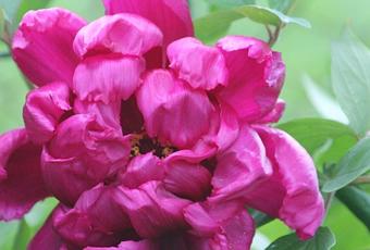 La pivoine herbacée à Romilly a fleuri 2 ans après sa plantation, la première fois l'an dernier. Sa floraison est plus tardive. J'ai découvert sa première énorme fleur qui émergeait du tapis de consoude bleue le 4 juin :