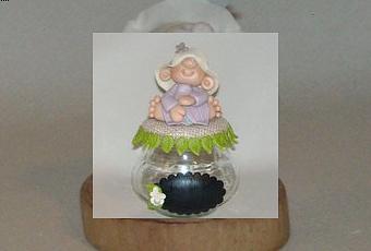 Envie d'offrir un cadeau sympa et original... Voici un joli pot avec P'tit lutin Le couvercle est recouvert de toile jute et contour de feuille sur le pot une pancarte tableau noir pour y ajouter le prénom ou mot doux. entièrement modelée à la main et réalisé en porcelaine froide ... modèle unique et originale...