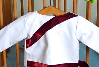 Oui, même les pyjamas peuvent avoir une touche d'élégance. Et celui composé de coton, épais, tiendra bien chaud. Sa veste s'ouvre à l'arrière avec des boutons en bois et au bas de sa salopette (possédant également une ouverture à boutons, aux bretelles) se trouve des "étriers" élastiques pour bien tenir les pieds.