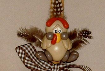 Fourchette en bois avec p'tite poule réalisé en porcelaine froide .
