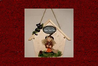 Maison porte- clés avec p'tite sorcière en porcelaine froide