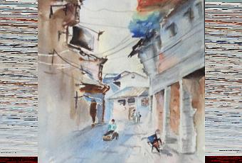 Une ruelle à l'aquarelle terminée hier en atelier. Finie en trois séances. Le sujet était quand même difficile et la reprise aussi. Passez un bon mercredi.