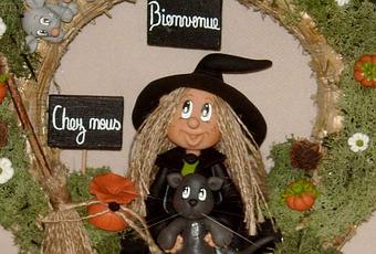 Couronne avec p'tite sorcière accompagnée de son chat et que voyons nous d'autre deux petites souris ...