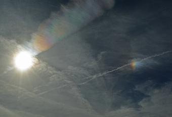 La parhélie ou parélie (du grec para, à côté, et hêlios, soleil) est un phénomène météorologique assez rare qui crée une ou plusieurs taches lumineuses - des sortes "d'échos" du soleil - formées par réfraction des rayons solaires par un nuage de cristaux de glace.