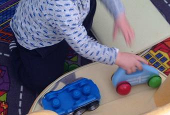 Il a toutes sortes de voitures, en plastique, en bois, avec bruit, sans bruit et il les utilise toutes !