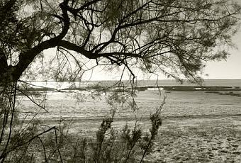 Lanton: Le Tamaris en bord de plage: sépia et couleurs: le soleil en face : les jumeaux