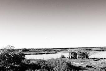 Domaine de Certes Bassin d'Arcachon Promenade-photos noir et blanc: ou le soleil en face et la marée basse!