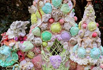 Elle est couverte de meringues, bonbons, macarons et biscuits croustillants.