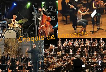 Croquis d’ambiance pris sur le vif lors de concerts . . . ici ou là