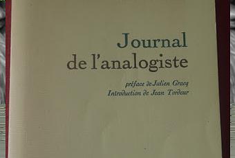 A l'intérieur du volume, il y avait un article de journal découpé, relatant un colloque de 1983, et la sortie de Cahiers Suzanne Lilar, chez Gallimard. Il était très jauni et avait décoloré la première page du livre, y laissant un rectangle ocre. Dans le texte était cité Hector Bianciotti qui célébrait les vertus du Journal de l'analogiste, "qui aide à vivre" parce qu'il nous fait entrevoir notre monde comme "un ensemble de réponses probables qui n'attendent que nos questions."