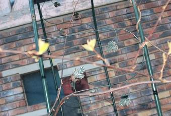 L’Actinidia kolomikta mâle qui a déjà plusieurs années présente sur toutes ses branches de jeunes feuilles d’un vert très tendre déjà teintées de rose :