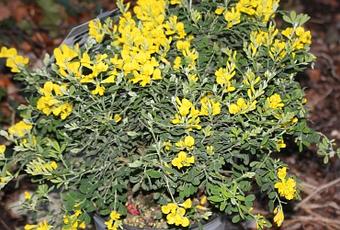 Je me suis laissé séduire par un genêt des teinturiers. Il présente l’avantage d’être en fleurs dès février jusqu’en juin et va ajouter de la gaieté parmi les camellias, les hellébores, les perce-neige et les jonquilles. Il y a un genêt abondant dans la région, sur le bord des routes côté soleil. C’est le genêt à balais, Cytisus scoparius, mais il ne fleurit qu’en mai et sa durée de vie est courte. Il se ressème parfois chez moi mais disparait vite.