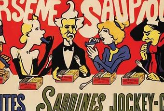 Affiche publicitaire de Jossot pour les sardines Saupiquet.