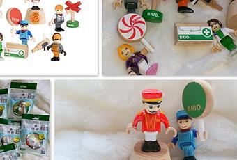 Pour Noël Tigrou a eu un petit train en bois de la marque Brio et il l'adore, c'est un petit train tout simple où il passe des heures à jouer avec lui et maintenant il va pouvoir y inventer encore plus d'histoires avec les nouveautés que je viens de recevoir des petits Personnages à collectionner de l'univers Brio il y en a en tout six et ils sont tous accompagnés d'un accessoire.