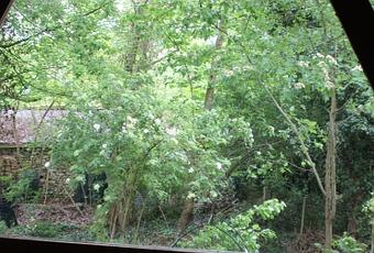 C’est le sureau endémique des îles Canaries, très proche de notre sureau noir. Il est aujourd’hui en pleine floraison alors que les sureaux noirs sont en retard cette année. D’habitude ils sont en fleurs à peu près en même temps. Je vois une explication : Sambucus nigra est en retard parce qu’il n’a pas subi de froid cet hiver et il est un peu déboussolé. La douceur de l‘hiver n’a pas gêné Sambucus palmensis, c’est un hiver plus proche de celui de sa région d’origine. Vu de la mezzanine du séjour :