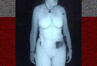 Je suis soulagé de n'avoir eu affaire qu'aux machines. L'image vous montre comment on nous a vu, sur les écrans. On nous a raconté des déshabillages autrement humiliants, complètement inutiles, des filles toujours, dans des pièces closes. Nudité intégrale. Levez la jambe, tournez, levez l'autre jambe. Ce n'était pas des machines qui regardaient.