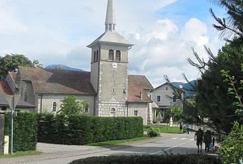 À l'est s'étire la montagne du Vuache, une chaîne dorsale de 13 km de long sur 1,5 km de large, d'altitude 700 à 1 101 m (mont Vuache), délimitant l'extrême sud-ouest du bassin genevois.