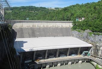 Programmée en 1933, la construction du barrage de Génissiat (sur les communes d'Injoux-Génissiat et de Franclens) commence en 1937 et, en 1939, le fleuve est coupé pour jeter les fondements de l'ouvrage. La guerre met un frein au chantier qui est même noyé en 1940. Les travaux se poursuivent néanmoins, mais il faudra attendre 1948 pour que débute la mise en eau et que soit inauguré le barrage.